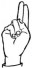 На ћирилици написано КОСТАДИН УДОВИЧИЋ састоји се из 16 слова [?]. Исписано ћириличном једноручном азбуком за глувонеме: